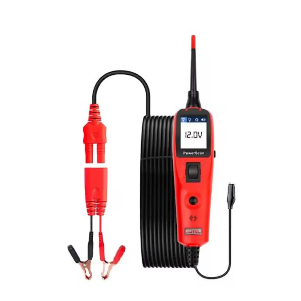 La PS100 permite realizar pruebas de polaridad, tierra, continuidad, voltaje y corriente, así como activar componentes eléctricos como ventiladores, relés o luces directamente desde el equipo. Su pantalla de lectura clara facilita la interpretación de resultados, mientras que el cable extensible de 6 metros brinda libertad de movimiento para trabajar alrededor del vehículo.